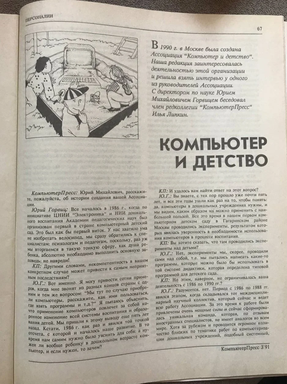 Об опыте создания компьютерного комплекса для развития дошкольников